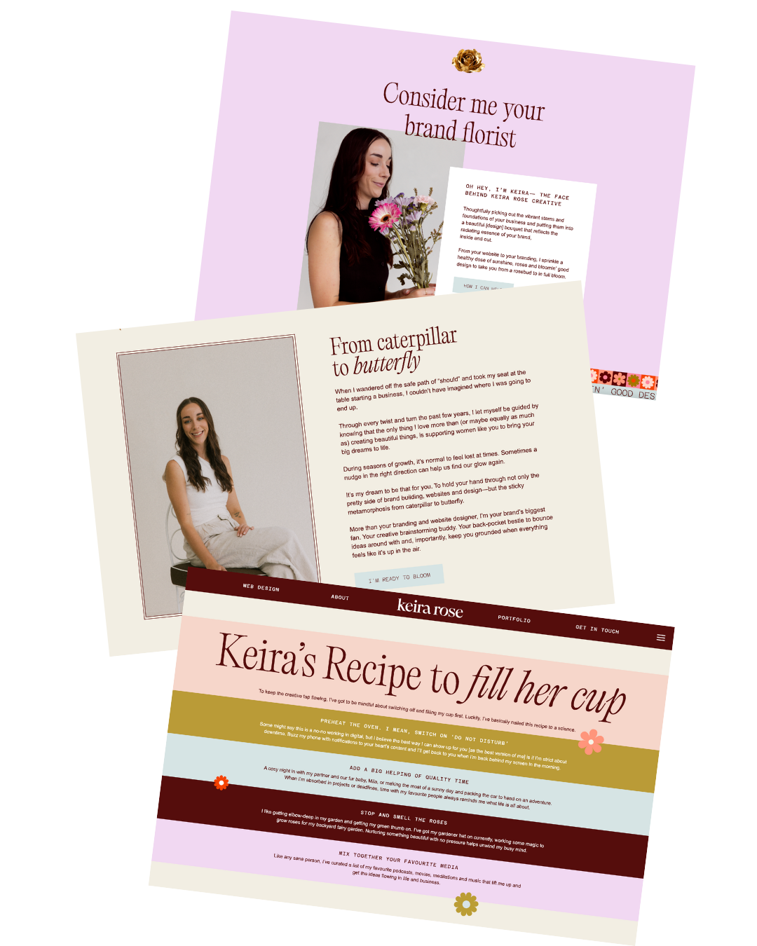 Swipe through below and read the words we wrote for Keira’s website that had her booked out three months in advance for website copy projects after launch.