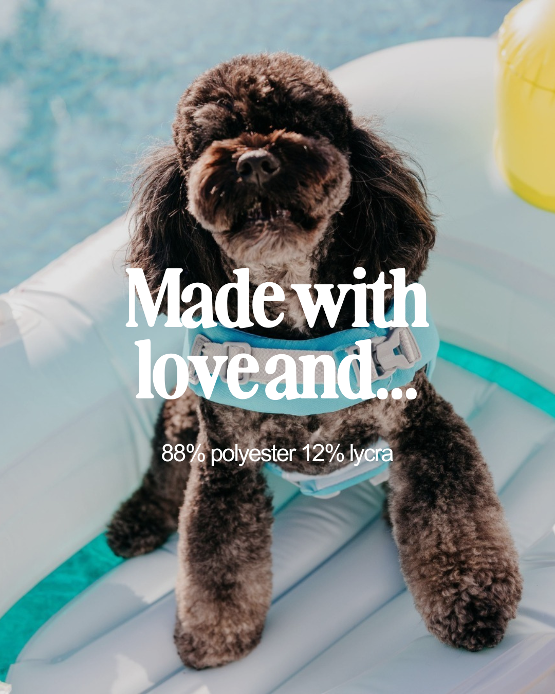 Colourfast dyes resistant to chlorinated and saltwater to maintain the fresh, bright prints of your pup’s rashie for years to come